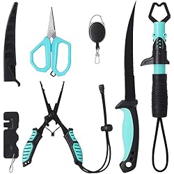 $18.97 (as of October 27, 2025 20:07 GMT +00:00 – More infoProduct prices and availability are accurate as of the date/time indicated and are subject to change. Any price and availability information displayed on [relevant Amazon Site(s), as applicable] at the time of purchase will apply to the purchase of this product.)MD MADOATS 6pc Fishing Tool Set, Professional Freshwater Fishing Gear, Fishing Pliers, Fillet Knife, Fishing Scissors, Fish Lip Gripper, Sharpener, Tool Retractor