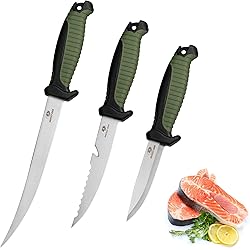 $39.99 (as of October 28, 2025 16:34 GMT +00:00 – More infoProduct prices and availability are accurate as of the date/time indicated and are subject to change. Any price and availability information displayed on [relevant Amazon Site(s), as applicable] at the time of purchase will apply to the purchase of this product.)MOSSY OAK 3-Piece Fishing Fillet Knife Set with Protective Sheath, Stainless Steel Filet Knives with Non-Slip Handle, Bait Knife for Filleting and Boning (Military Green)