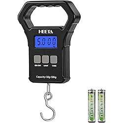 $17.99 (as of October 28, 2025 00:21 GMT +00:00 – More infoProduct prices and availability are accurate as of the date/time indicated and are subject to change. Any price and availability information displayed on [relevant Amazon Site(s), as applicable] at the time of purchase will apply to the purchase of this product.)HEETA Fish Scale, 110lb/50kg Digital Portable Hanging Fishing Weight Scale with Backlit LCD Display, Luggage Scale with Hook, Non-Slip Large ABS Handle & 2 AAA Batteries, Fishing Gifts Gear for Men