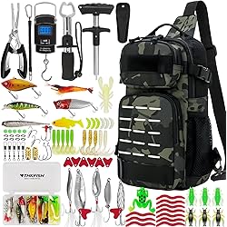 $13.50 (as of November 2, 2025 00:59 GMT +00:00 – More infoProduct prices and availability are accurate as of the date/time indicated and are subject to change. Any price and availability information displayed on [relevant Amazon Site(s), as applicable] at the time of purchase will apply to the purchase of this product.)THKFISH 85Pcs Fishing Tool Kit, Fishing Backpack with Tackle Boxes Included, Fishing Tackle Kit Include Fishing Bait Lure Gear Kit, Fishing Pliers, Fish Hook Remover, Lip Gripper