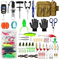 $7.99 (as of October 26, 2025 12:05 GMT +00:00 – More infoProduct prices and availability are accurate as of the date/time indicated and are subject to change. Any price and availability information displayed on [relevant Amazon Site(s), as applicable] at the time of purchase will apply to the purchase of this product.)AOFUXTI Fishing Tool Kit – 112pcs Fishing Gear & Equipment, Fish Pliers, Hook Remover, Scale, Scissors, Lip Gripper, Lures