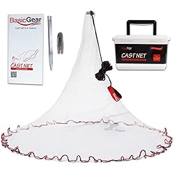$12.98 (as of October 24, 2025 23:23 GMT +00:00 – More infoProduct prices and availability are accurate as of the date/time indicated and are subject to change. Any price and availability information displayed on [relevant Amazon Site(s), as applicable] at the time of purchase will apply to the purchase of this product.)BasicGear Cast Net | Lead, 3ft-12ft Radius, 3/8 or 1/4 inch Mesh for Freshwater and Saltwater Bait Fish| Professional Grade and Upgraded Material | Throw Style