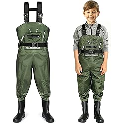 $9.99 (as of November 18, 2025 04:58 GMT +00:00 – More infoProduct prices and availability are accurate as of the date/time indicated and are subject to change. Any price and availability information displayed on [relevant Amazon Site(s), as applicable] at the time of purchase will apply to the purchase of this product.)wasserflux Kids Chest Waders with Boots, Waterproof PVC Youth Fishing Waders with Reinforced Knees & Reflective Strips