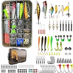 $119.99 (as of October 24, 2025 19:39 GMT +00:00 – More infoProduct prices and availability are accurate as of the date/time indicated and are subject to change. Any price and availability information displayed on [relevant Amazon Site(s), as applicable] at the time of purchase will apply to the purchase of this product.)A complete set of 175 fishing accessories, including fishing gear box, metal bait and silicone soft bait, hooks and weight accessories,Fishing bait kit suitable for seawater and freshwater (175)