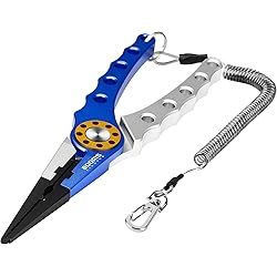 $6.99 (as of October 24, 2025 22:05 GMT +00:00 – More infoProduct prices and availability are accurate as of the date/time indicated and are subject to change. Any price and availability information displayed on [relevant Amazon Site(s), as applicable] at the time of purchase will apply to the purchase of this product.)Booms Fishing X1 Aluminum Fishing Pliers Saltwater, Surf Fishing Tackle Kit, Fishing Multitool Hook Remover Braided Fishing Line Cutting and Split Ring with Coiled Lanyard and Sheath
