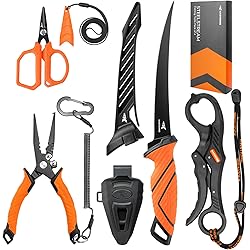 $9.99 (as of October 25, 2025 15:44 GMT +00:00 – More infoProduct prices and availability are accurate as of the date/time indicated and are subject to change. Any price and availability information displayed on [relevant Amazon Site(s), as applicable] at the time of purchase will apply to the purchase of this product.)KastKing 6-inch Fishing Pliers and Fillet Knife, 6″ Split Ring Nose Plier and 7″ Fillet Knife, Orange